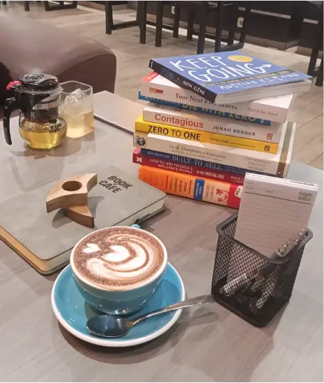 Membaca, mencatat, dan berdiskusi di cafe